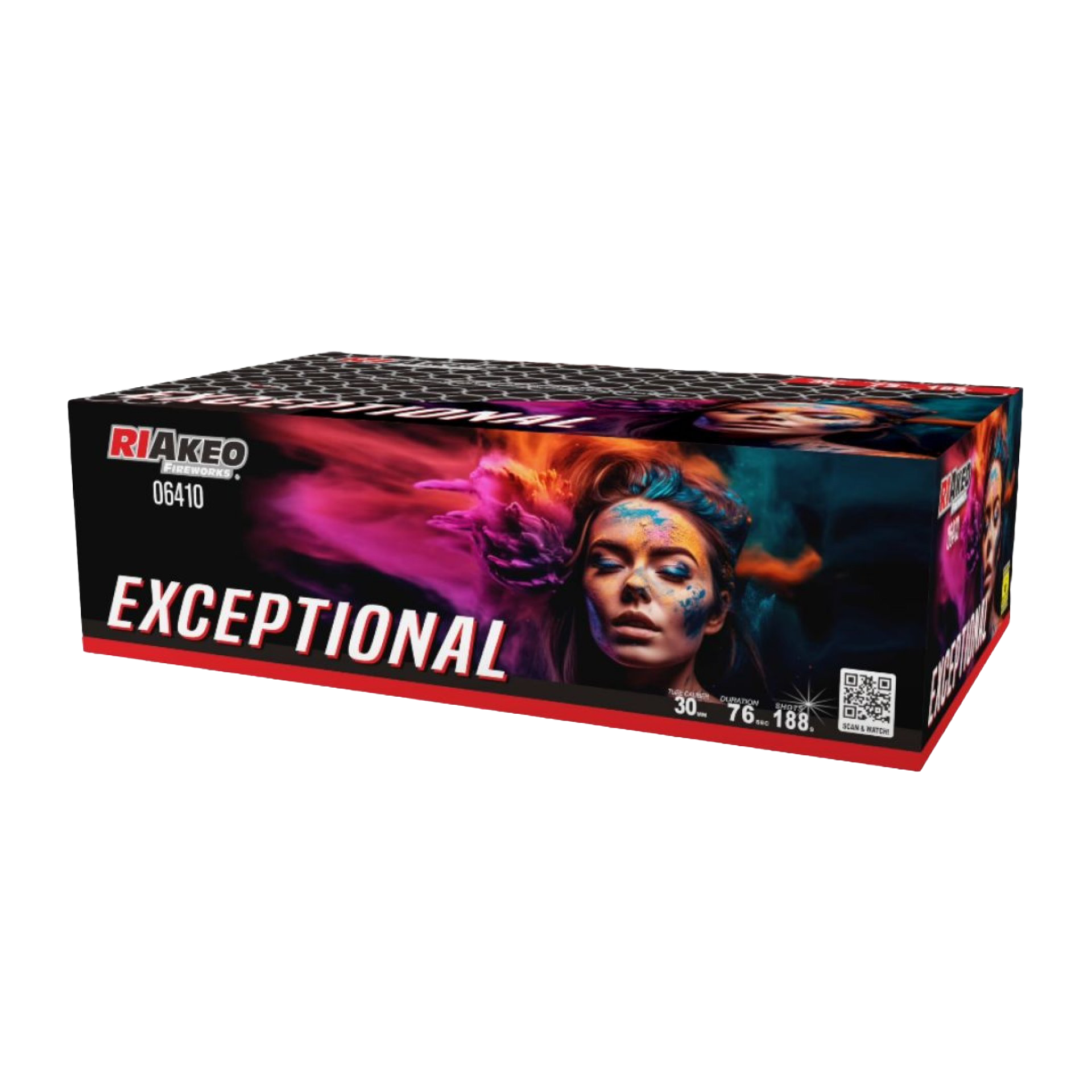 Exceptioneel in alle facetten. Kleuren zoals je nog niet eerder gezien hebt. Een dubbele compound met 30mm tubes en 188 schoten om je vingers bij af te likken. Ongekende kwaliteit, 2x2 kg ongetemde power komt los. Vuurwerk zoals je nog nooit gezien hebt, ongekend dikke waaiers wisselen de kleurrijke uptempo schoten af.