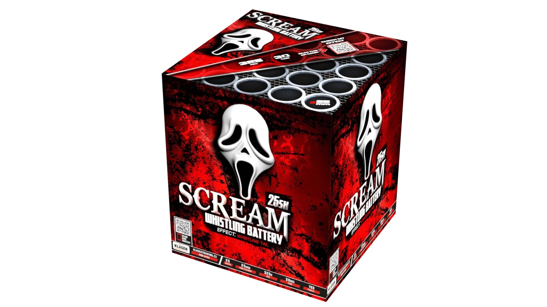 Klasek scream Battery, 25 shots in 25 gillende schoten met zilveren staarten.